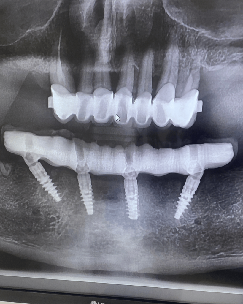 Gli impianti dentali All On 4 permettono di riabilitare con denti fissi un’intera arcata dentale posizionando solo 4 impianti osteointegrati. Gli impianti dentali All On 4 utilizzano perni realizzati in titanio (utilizziamo impianti che vengono sottoposti a severe certificazioni statunitensi ed europee come la FDA) che vengono inseriti nell’osso. L’impianto endosseo diventa così parte dell’organismo, riabilitando l’arcata dentale compromessa.
